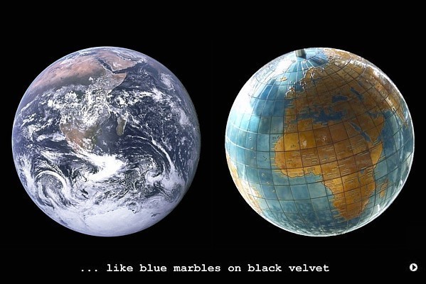 Blue Marble (German für Blaue Murmel) is the name for a well-known photo of the Earth, which began the crew of Apollo 17 in 1972 from a distance of 45 000 km. Kuettner's Blue Marble is an edited photo of his terrestrial globe. |